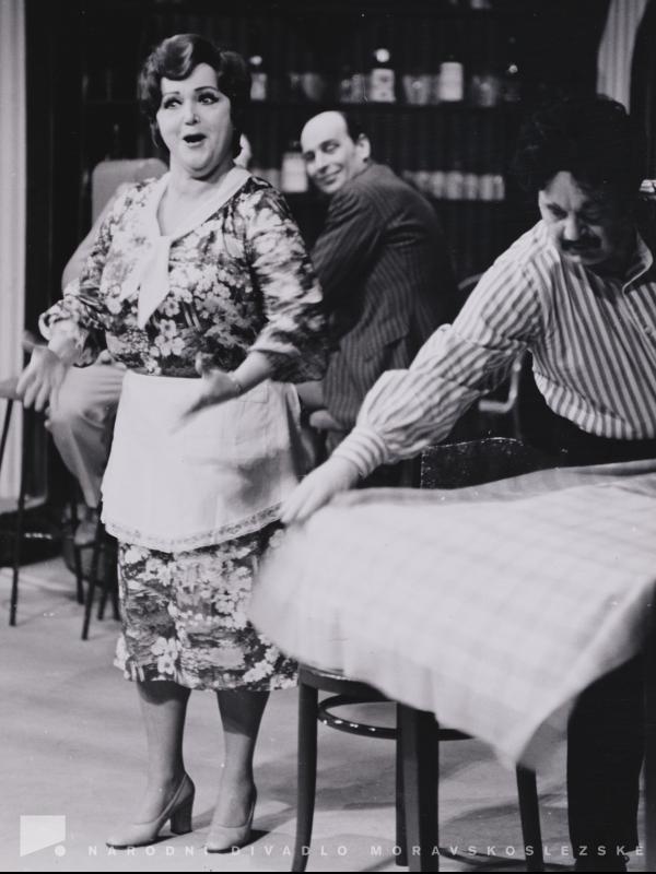 Vlasta Tolarová (Anděla, jeho manželka), Josef Kobr (Benjamin Spontelli, Ital, majitel restaurace)